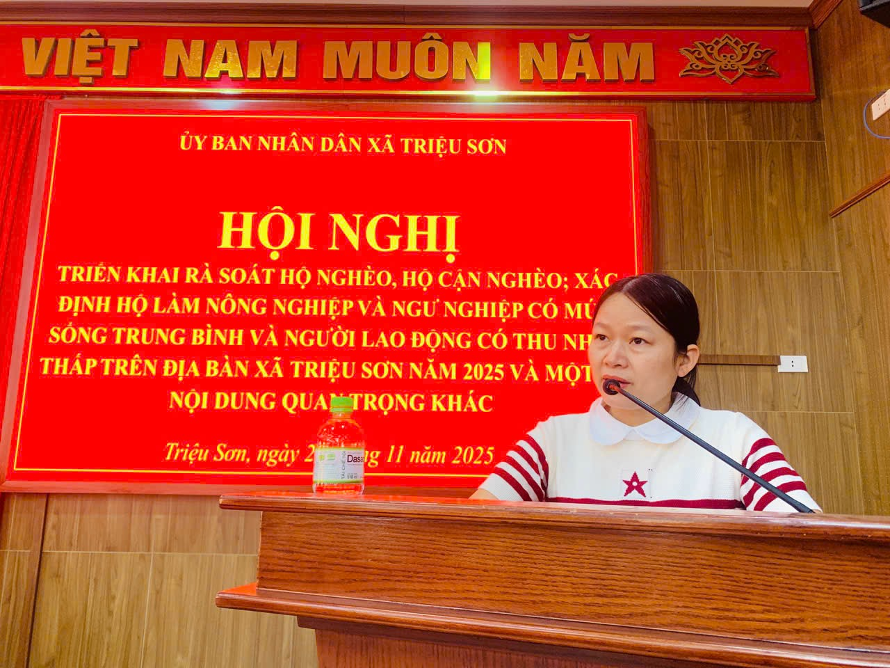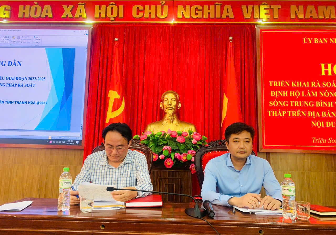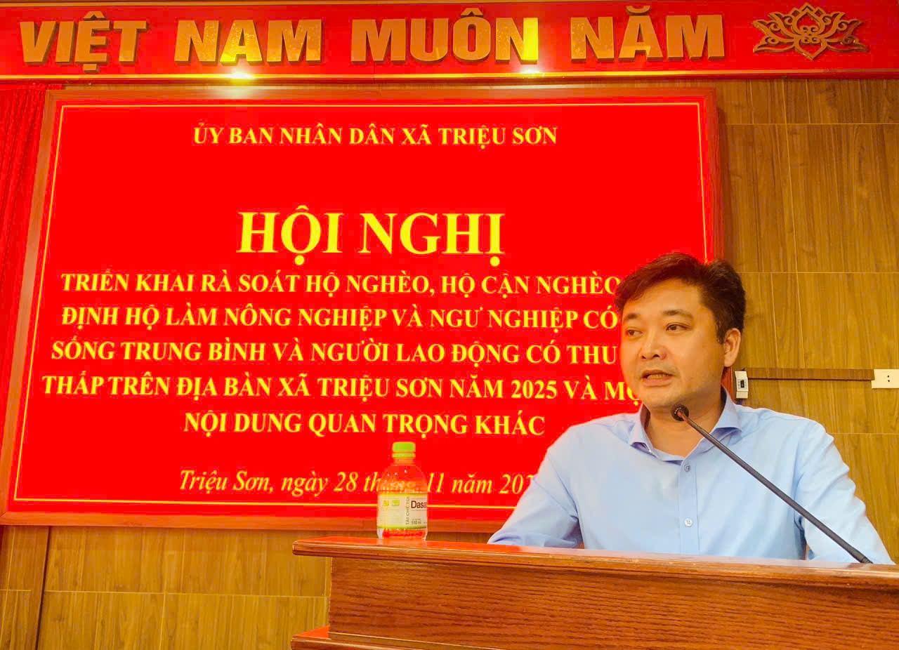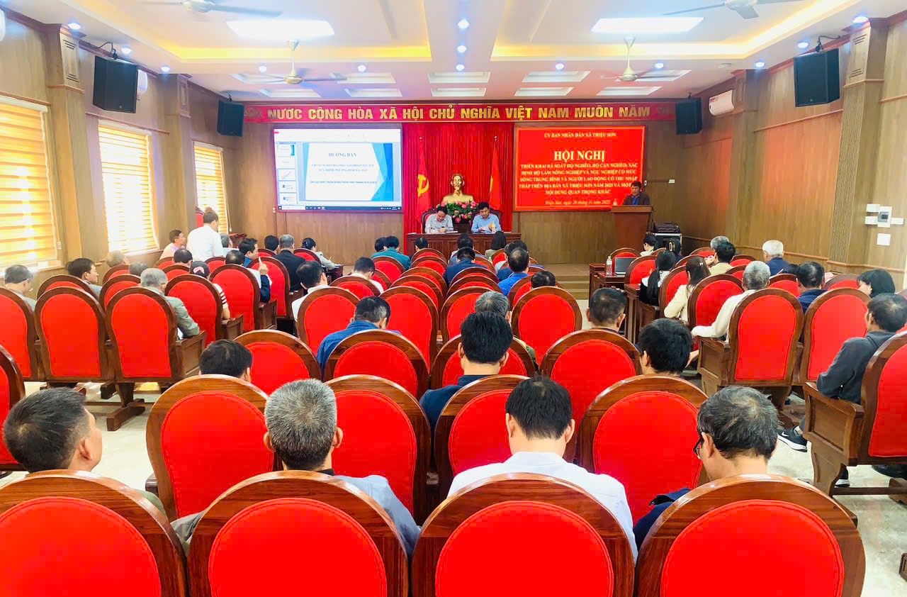 Chiều ngày 28/11, UBND xã Triệu Sơn tổ chức hội nghị rà soát hộ nghèo, cận nghèo, hộ làm nông nghiệp, lâm nghiệp, ngư nghiệp, có mức sống trung bình và người lao động có thu nhập thấp trên địa bàn xã. Dự và chỉ đạo hội nghị có đồng chí Vũ Văn Ba, Phó Bí thư Đảng ủy, Chủ UBND xã; đồng chí Lê Trọng Dũng, Ủy viên BTV, Phó Chủ tịch UBND xã; các đồng chí trong BCĐ rà soát; các đồng chí Bí thư, thôn trưởng.