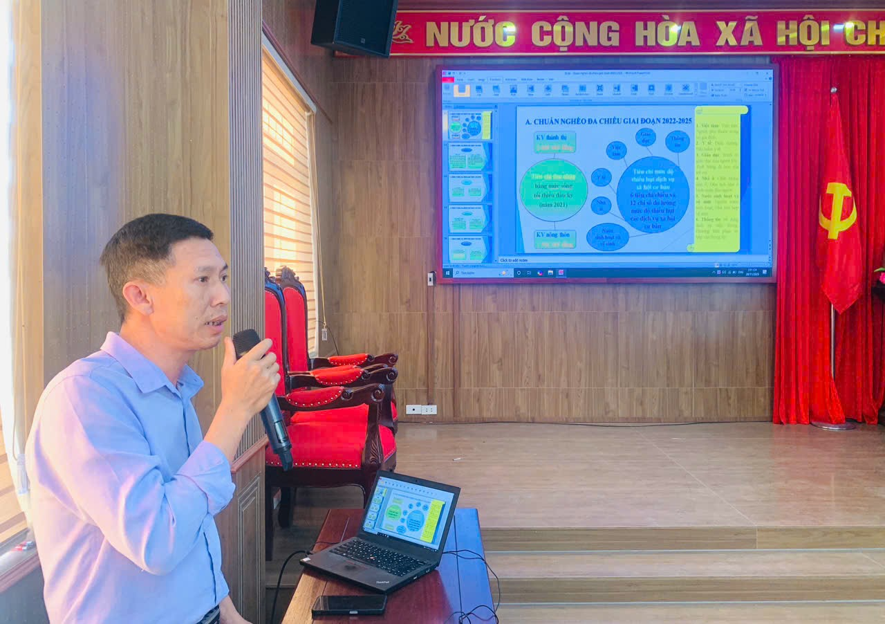 , tạo sự đồng thuận cao trong cộng đồng. Cán bộ phụ trách cần hướng dẫn cụ thể, đầy đủ cho các hộ gia đình về tiêu chí nghèo đa chiều và các biểu mẫu liên quan, tránh sai sót trong quá trình tổng hợp. Sau rà soát, UBND xã sẽ căn cứ kết quả để xây dựng kế hoạch hỗ trợ phù hợp cho từng nhóm đối tượng, ưu tiên các hộ nghèo, hộ cận nghèo và hộ có thu nhập thấp, nhằm thực hiện mục tiêu an sinh xã hội và giảm nghèo bền vững. Cuối cùng, đồng chí đề nghị các thành viên Ban Chỉ đạo tiếp tục phát huy tinh thần trách nhiệm, làm việc nghiêm túc, đảm bảo hoàn thành công tác rà soát đúng thời gian theo kế hoạch của xã và cấp trên.