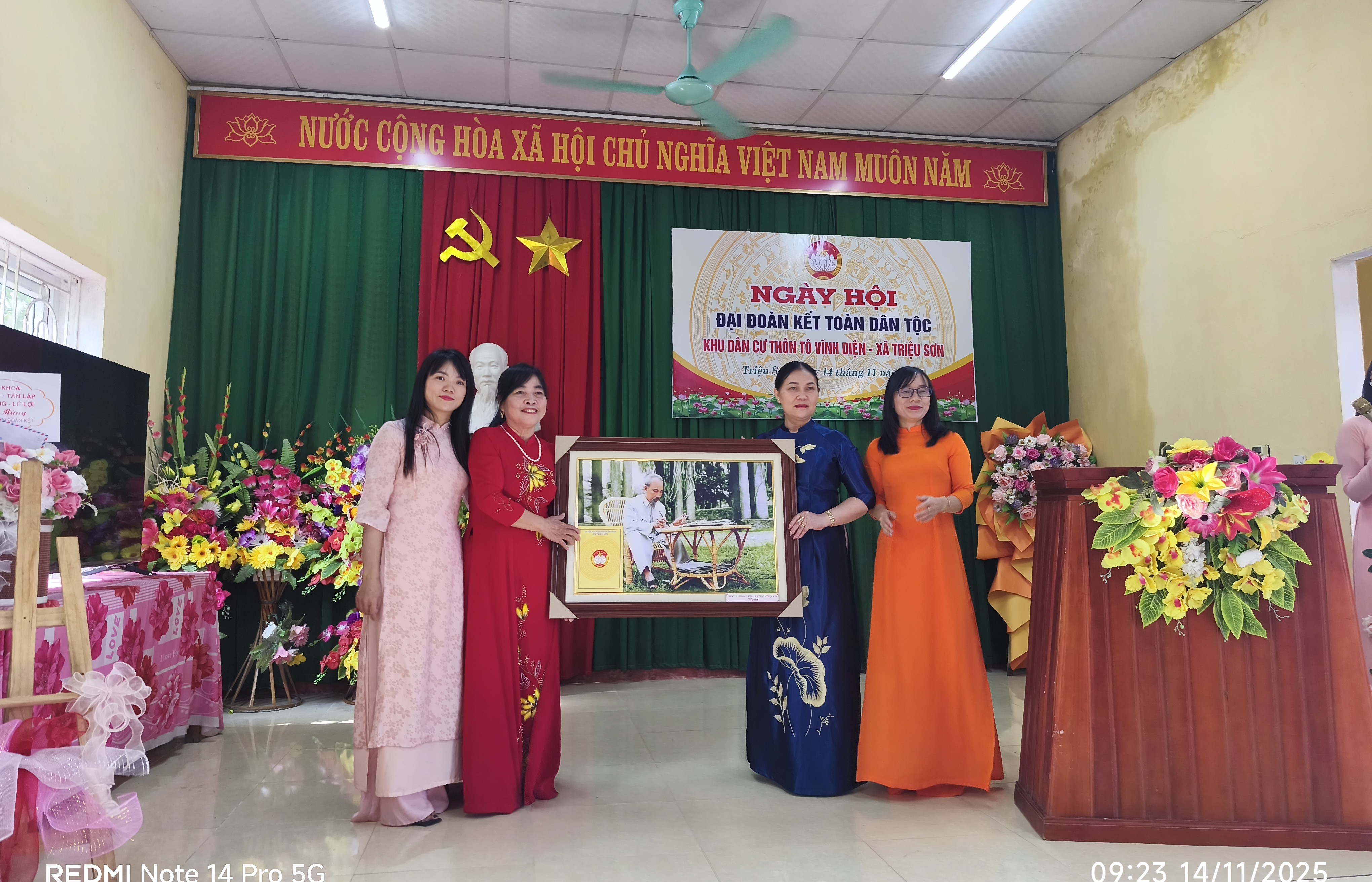 Sáng ngày 14/11/2025, khu dân cư thôn Tô Vĩnh Diện, xã Triệu Sơn đã long trọng tổ chức Ngày hội Đại đoàn kết toàn dân tộc, nhân kỷ niệm 95 năm Ngày truyền thống Mặt trận Tổ quốc Việt Nam (18/11/1930 – 18/11/2025). Đến dự và chung vui với bà con Nhân dân trong thôn có đồng chí Lê Thị Luyện – Ủy viên Ban Thường vụ Đảng ủy, Phó Chủ tịch HĐND xã, đại diện các ban ngành đoàn thể xã cùng đông đảo cán bộ, đảng viên và Nhân dân trong khu dân cư.